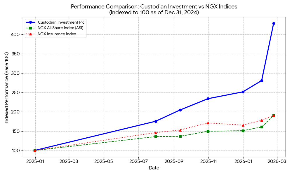 In the last one year, the stock has outperformed the All Share Index, and the NGX Insurance Index.