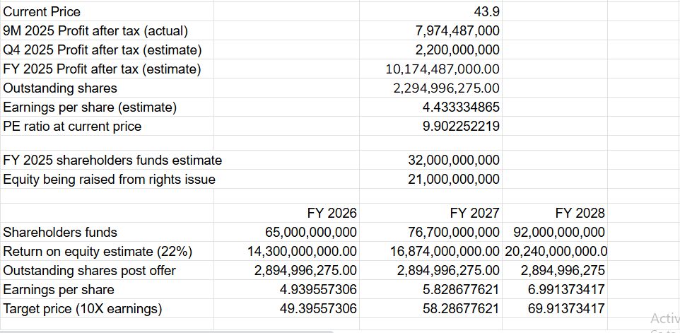 The rights issue price of N35 is at a decent discount to current price of N43.9.
